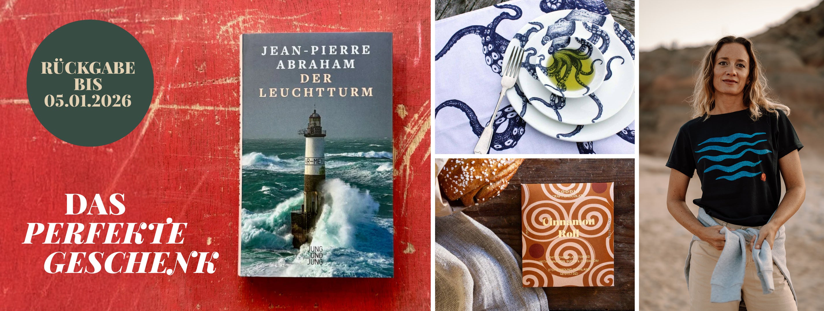 Wenn die ersten Stürme über die Küste ziehen und die Abende wieder länger werden, machen wir es uns drinnen gemütlich.Warme Wolldecken für die Couch, weiche Kissen für den Lesesessel und Deko, die auch in der dunklen Jahreszeit an Meer und weite Horizonte erinnern. Unsere Zuhause-Kollektion bringt die Ruhe, Gelassenheit und Meer in deine vier Wände.Für gemütliche Herbstabende mit einem guten Buch und einer heißen Tasse Tee.