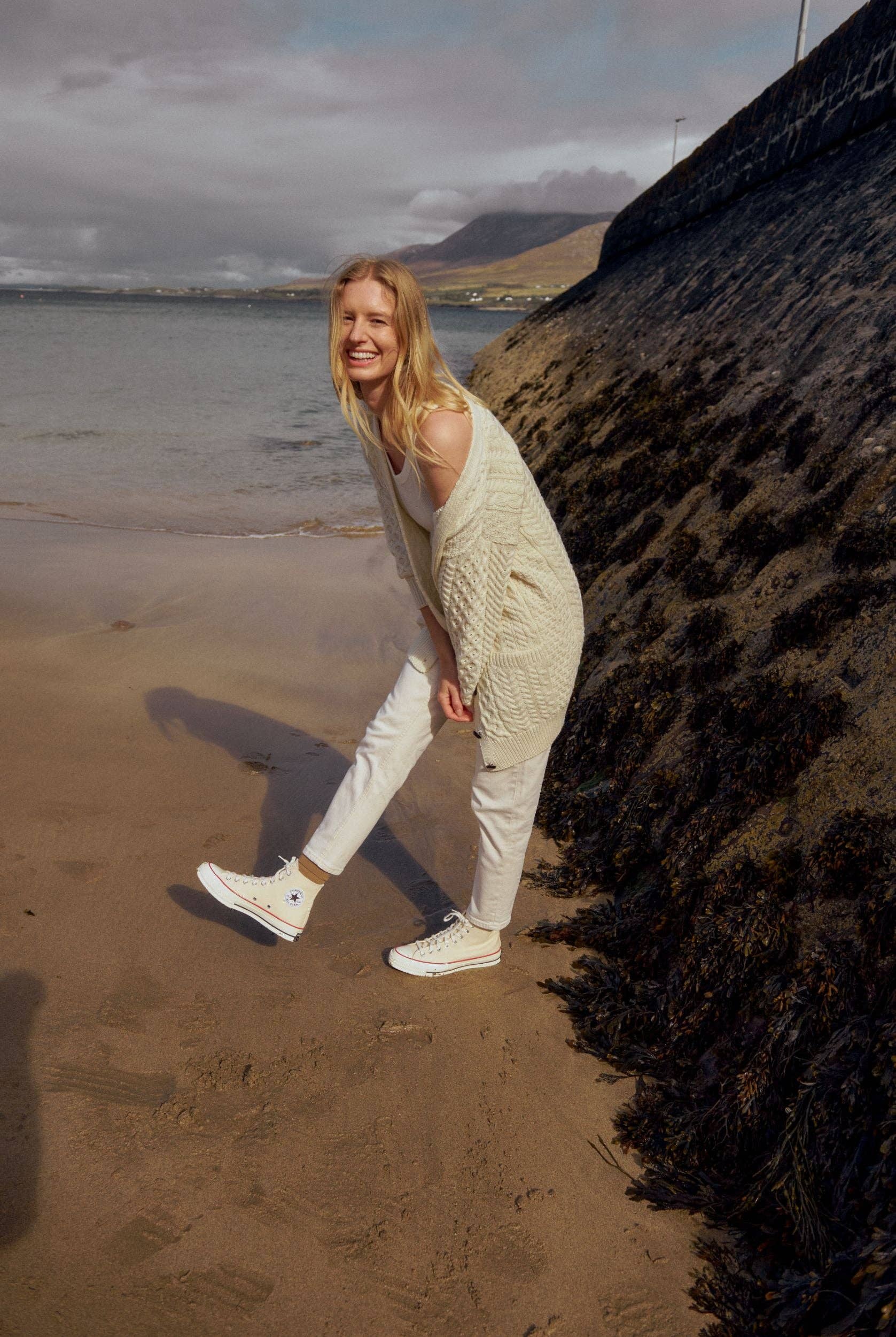Toller Cardigan aus supersofter Merino Wolle. Traditionelle irische Strickkunst trifft zeitgemäßes Design. So könnte man das zusammenfassen. Die neue Lieblingsjacke von Ankerherz Verlegerin Julia. Passt perfekt, fällt perfekt, sieht lässig aus und temperiert immer angenehm.